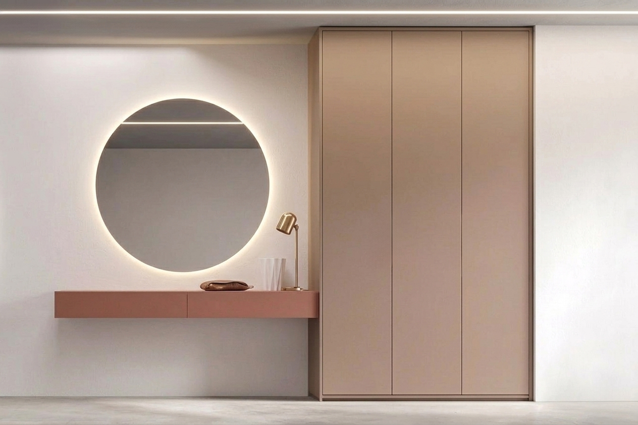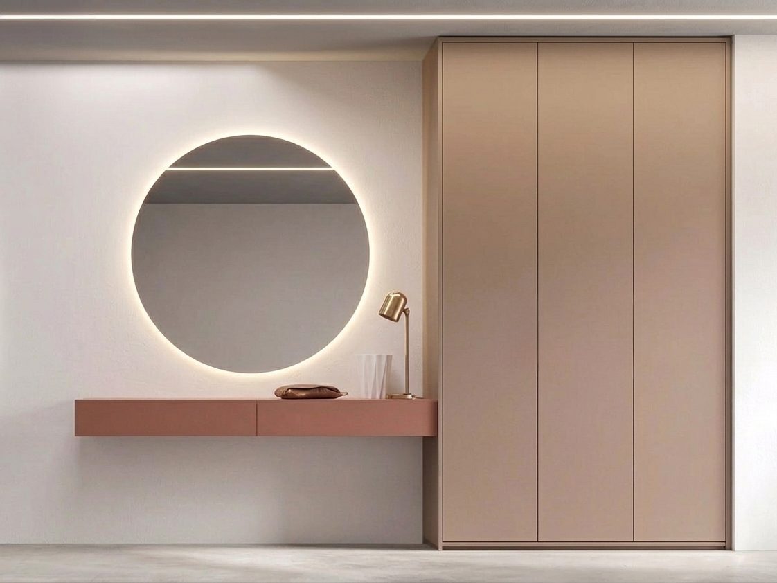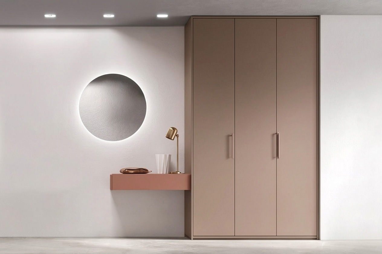 Armadiature “invisibili” a filo muro: se lo spazio lo consente (magari sfruttando una rientranza), gli armadi a filo muro verniciati della stessa tinta della parete mimetizzano il loro volume. Sono la soluzione definitiva per nascondere cappotti, borse e scarpe, mantenendo quell’ordine visivo che è fondamentale negli spazi stretti.