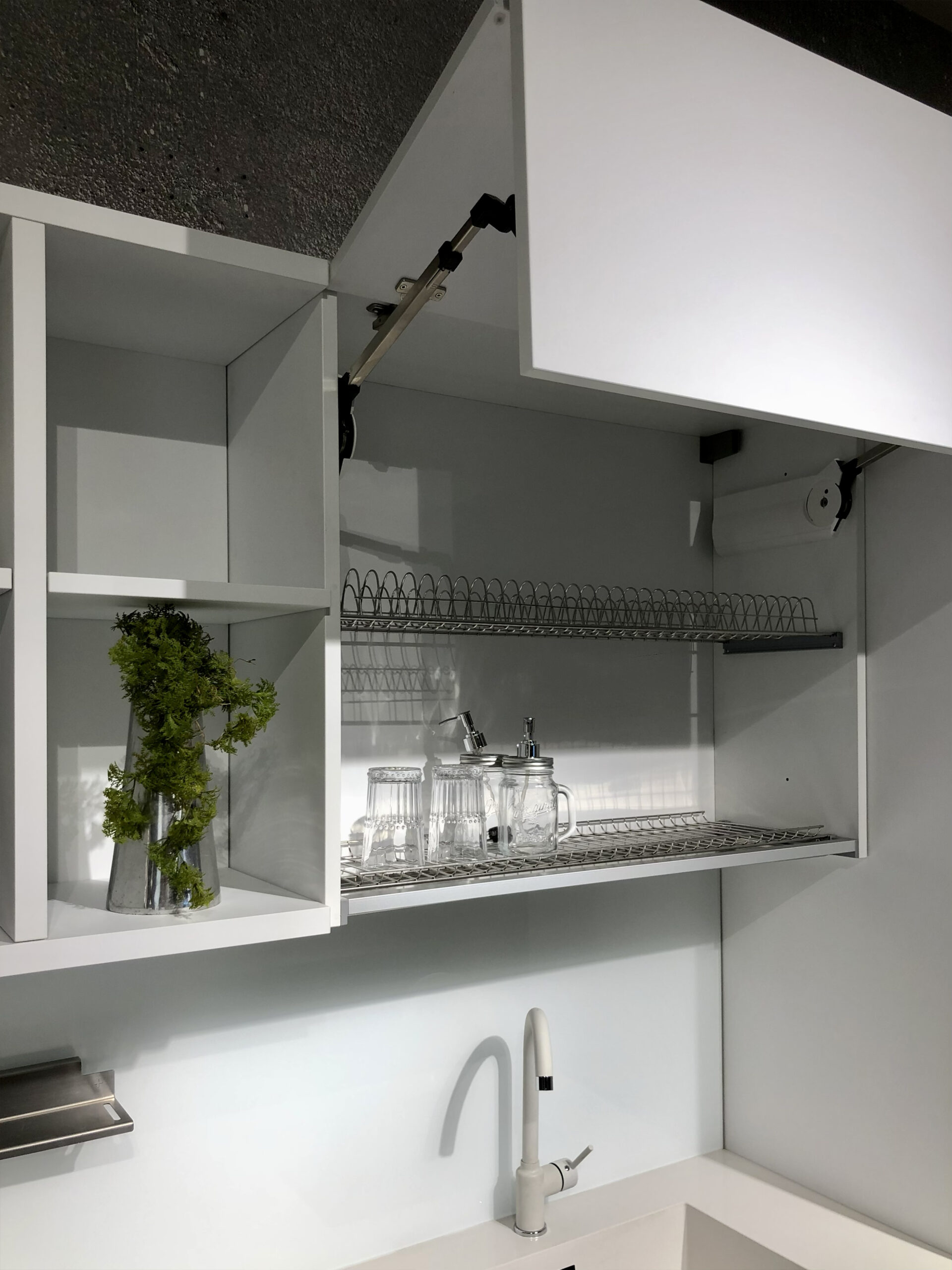 Con una finitura in laccato bianco sulle colonne e un top in quarzo bianco, questa cucina offre una combinazione di estetica raffinata e praticità senza pari.