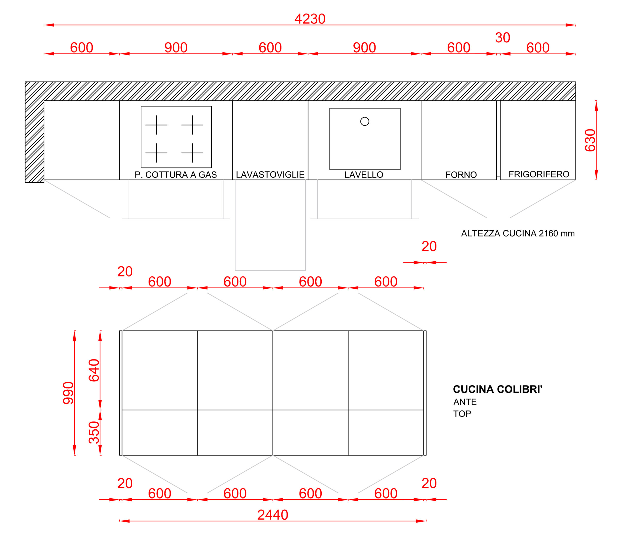 Dimensioni della Cucina esclusa Isola Forma 2000